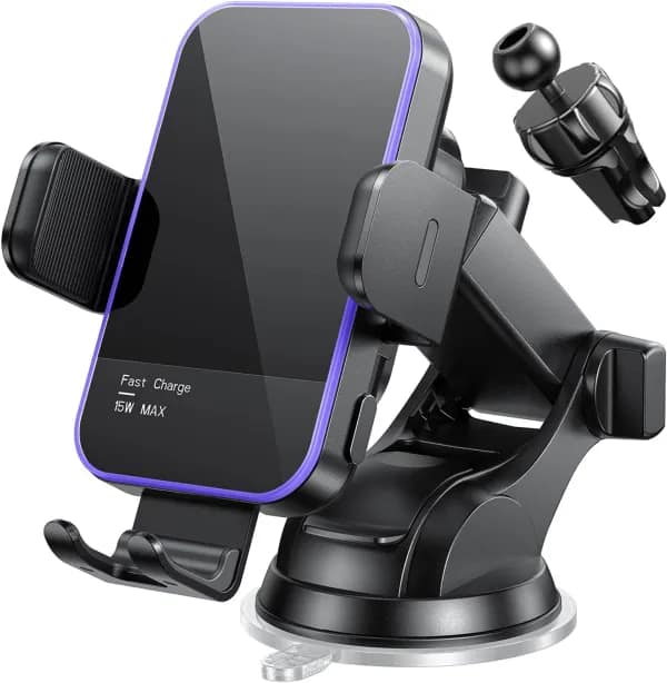 Wireless Car Charger, 7 Color RGB Backlight – Mosurr 15W Auto Clamping Phone Holder for Your Car